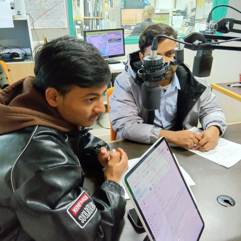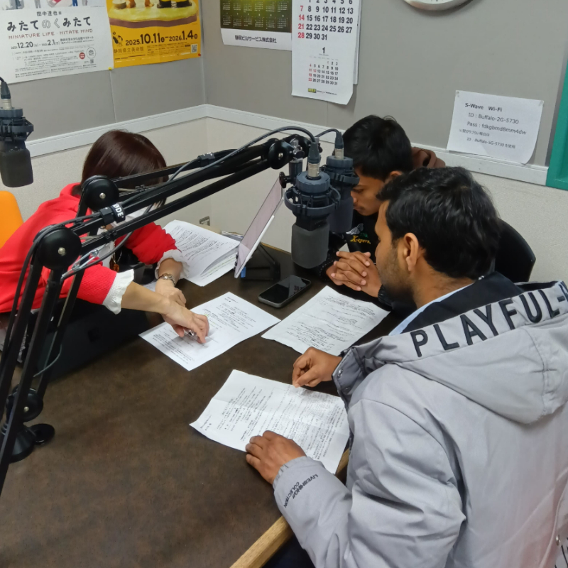 学生がFMラジオに出演しました。